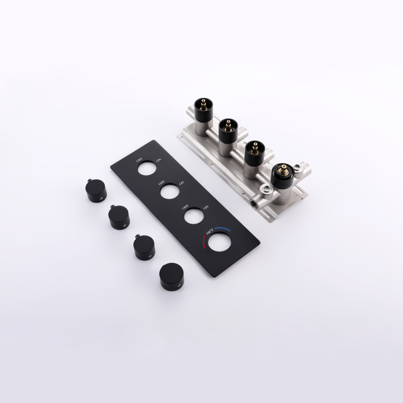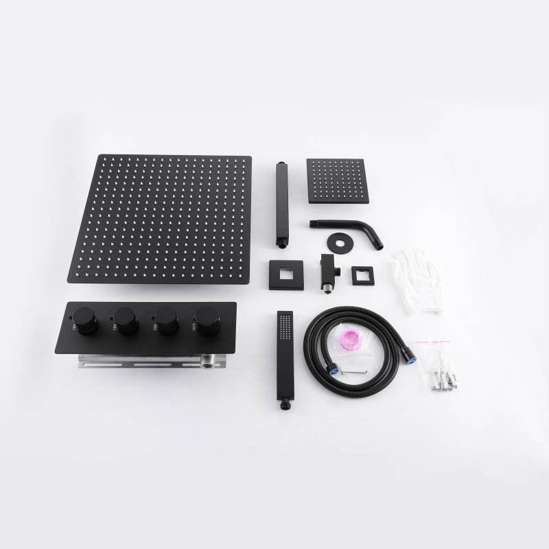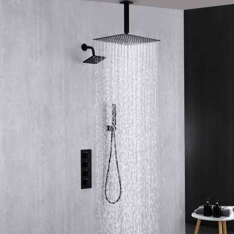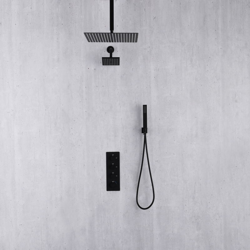 بيت / فئات المنتجات / مجموعة الدش / دش ثرموستاتي / مجموعة خلاط دش ثرموستاتي مخفي بثلاث وظائف للحمام الأسود الحديث