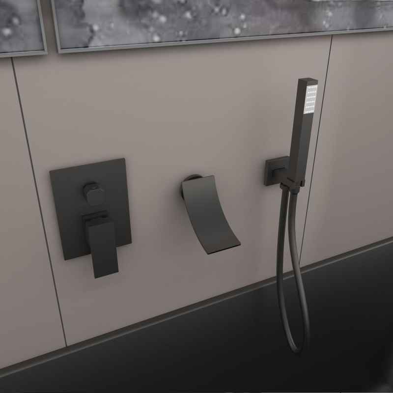 يوفر صنبور حوض الاستحمام تأثيرًا ناعمًا لتدفق المياه بمقبضين يتحكمان في تدفق المياه ودرجة حرارتها.