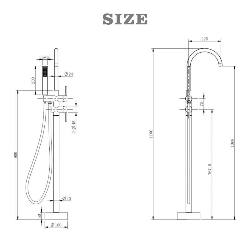صنبور حوض استحمام قائم بذاته - صنبور حوض استحمام من الفولاذ المقاوم للصدأ 304 يستخدم إحساسًا بسيطًا ونظيفًا لحمامك، مع ارتفاع مناسب يجعلك تشعر بالراحة عند الاستخدام. إنه مصنوع بالكامل من الفولاذ المقاوم للصدأ 304 للحصول على أقصى قدر من المتانة. ويقدم مجموعة متنوعة من معالجات الألوان حسب اختيارك، مثل الكروم، والأسود غير اللامع، والفولاذ المقاوم للصدأ المصقول، والرمادي المسدس، والذهبي المصقول، والذهبي الوردي النحاسي الحامض، والذهبي الوردي وما إلى ذلك، يمكنك اختيار اللون المفضل لديك ليتناسب مع نمط ديكور الحمام المفضل لديك.