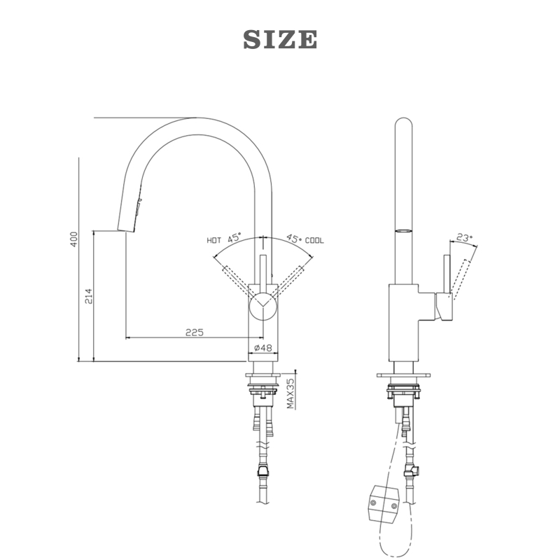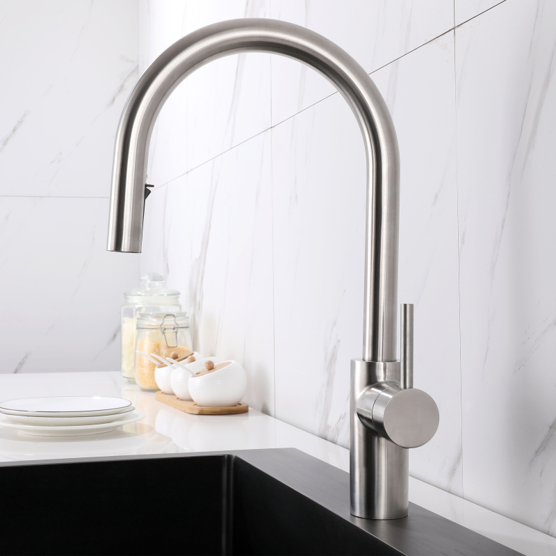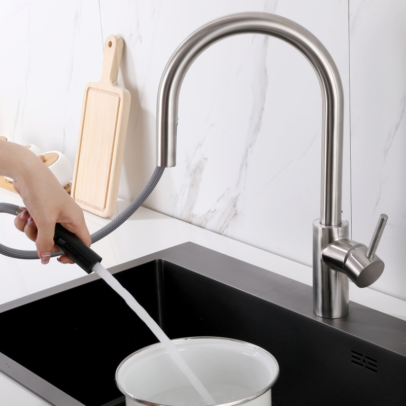 صنبور خلاط المطبخ القابل للسحب - صنبور حوض من الفولاذ المقاوم للصدأ 304 يستخدم إحساسًا بسيطًا ونظيفًا لمطبخك ، مصمم خصيصًا لحوض حوض الأوعية، مع ارتفاع مناسب يجعلك تشعر بالراحة عند الاستخدام. إنه مصنوع بالكامل من الفولاذ المقاوم للصدأ 304 للحصول على أقصى قدر من المتانة. ويقدم مجموعة متنوعة من معالجات الألوان حسب اختيارك، مثل الكروم والأسود غير اللامع والفولاذ المقاوم للصدأ المصقول والرمادي المسدس والذهبي المصقول والنحاس الحامض والذهبي الوردي وما إلى ذلك، يمكنك اختيار اللون المفضل لديك ليتناسب مع نمط ديكور المطبخ المفضل لديك.