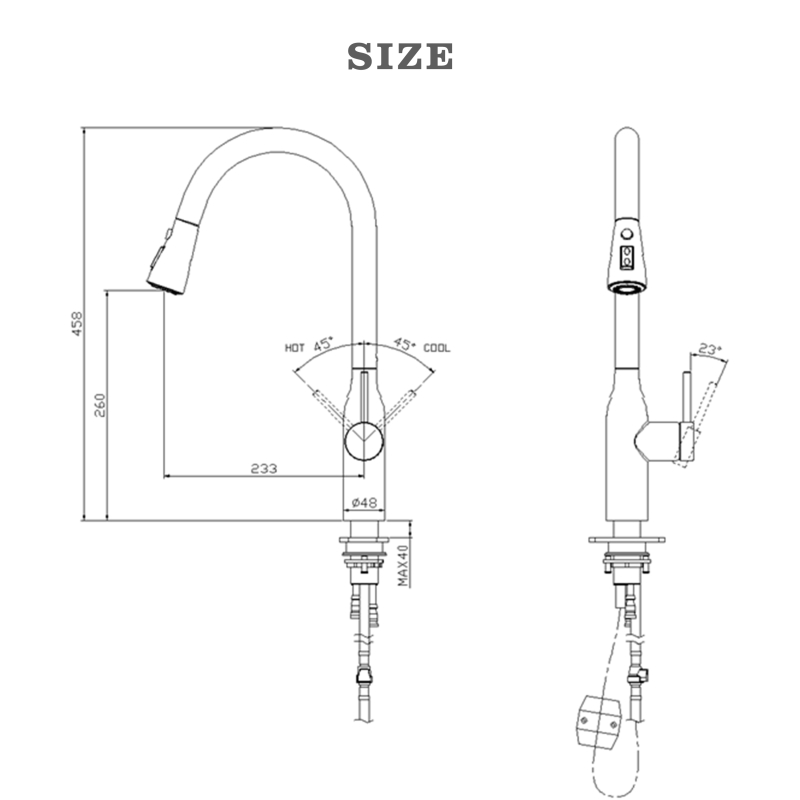 صنبور خلاط المطبخ القابل للسحب - صنبور حوض من الفولاذ المقاوم للصدأ 304 يستخدم إحساسًا بسيطًا ونظيفًا لمطبخك ، مصمم خصيصًا لحوض حوض الأوعية، مع ارتفاع مناسب يجعلك تشعر بالراحة عند الاستخدام. إنه مصنوع بالكامل من الفولاذ المقاوم للصدأ 304 للحصول على أقصى قدر من المتانة. ويقدم مجموعة متنوعة من معالجات الألوان حسب اختيارك، مثل الكروم والأسود غير اللامع والفولاذ المقاوم للصدأ المصقول والرمادي المسدس والذهبي المصقول والنحاس الحامض والذهبي الوردي وما إلى ذلك، يمكنك اختيار اللون المفضل لديك ليتناسب مع نمط ديكور المطبخ المفضل لديك.