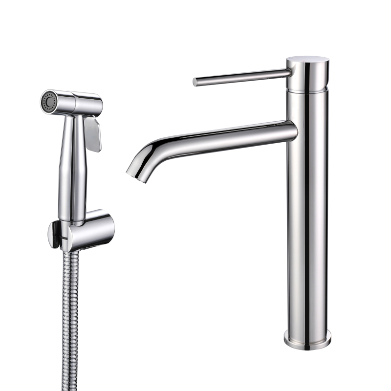 صنبور الحمام مع بخاخ بيديت - صنبور حوض من الفولاذ المقاوم للصدأ 304 يستخدم إحساسًا بسيطًا ونظيفًا لحمامك، مصمم خصيصًا لحوض حوض الأوعية، مع ارتفاع مناسب يجعلك تشعر بالراحة عند الاستخدام. إنه مصنوع بالكامل من الفولاذ المقاوم للصدأ 304 للحصول على أقصى قدر من المتانة. ويقدم مجموعة متنوعة من معالجات الألوان حسب اختيارك، مثل الكروم، والأسود غير اللامع، والفولاذ المقاوم للصدأ المصقول، والرمادي المسدس، والذهبي المصقول، والذهبي الوردي النحاسي الحامض، والذهبي الوردي وما إلى ذلك، يمكنك اختيار اللون المفضل لديك ليتناسب مع نمط ديكور الحمام المفضل لديك.