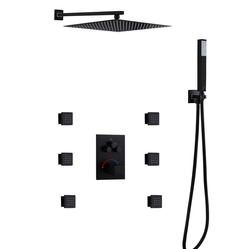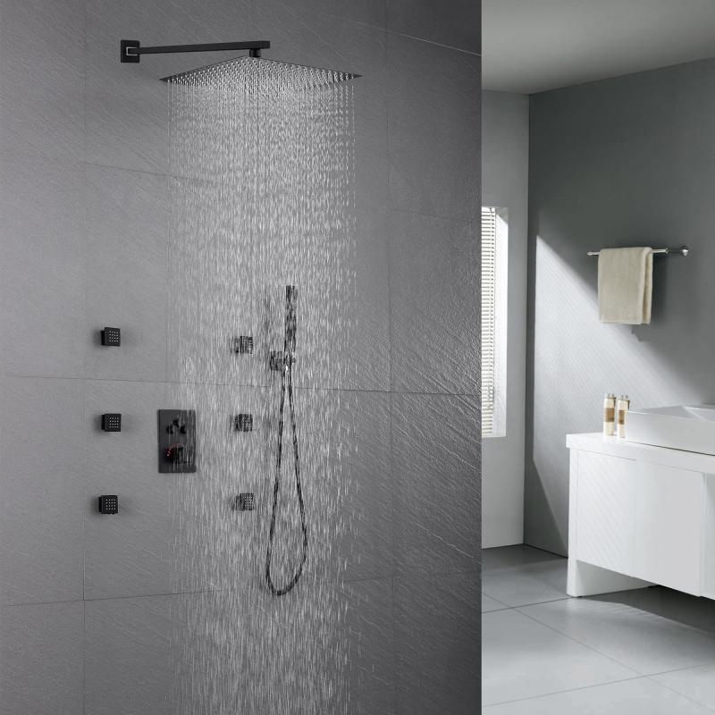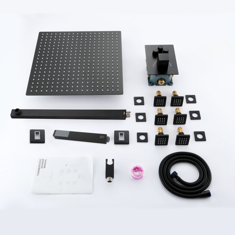 خلاط دش ثرموستاتي مخفي بثلاث وظائف - مجموعة الدش المصنوعة من الفولاذ المقاوم للصدأ 304 تجلب شعورًا مريحًا بالاستحمام إلى حمامك، وأسلوب تصميم بسيط وعصري، ويضيف لمسة أنيقة إلى حمامك. إنه مصنوع بالكامل من الفولاذ المقاوم للصدأ 304 للحصول على أقصى قدر من المتانة. ويقدم مجموعة متنوعة من معالجات الألوان لاختيارك، مثل الكروم، والأسود غير اللامع، ورسم أسلاك الفولاذ المقاوم للصدأ، والرمادي المسدس، وذهب سحب الأسلاك، والنحاس الحمضي الذهبي، والذهبي الوردي، وما إلى ذلك، يمكنك اختيار اللون المفضل لديك ليتناسب مع نمط ديكور الحمام المفضل لديك.