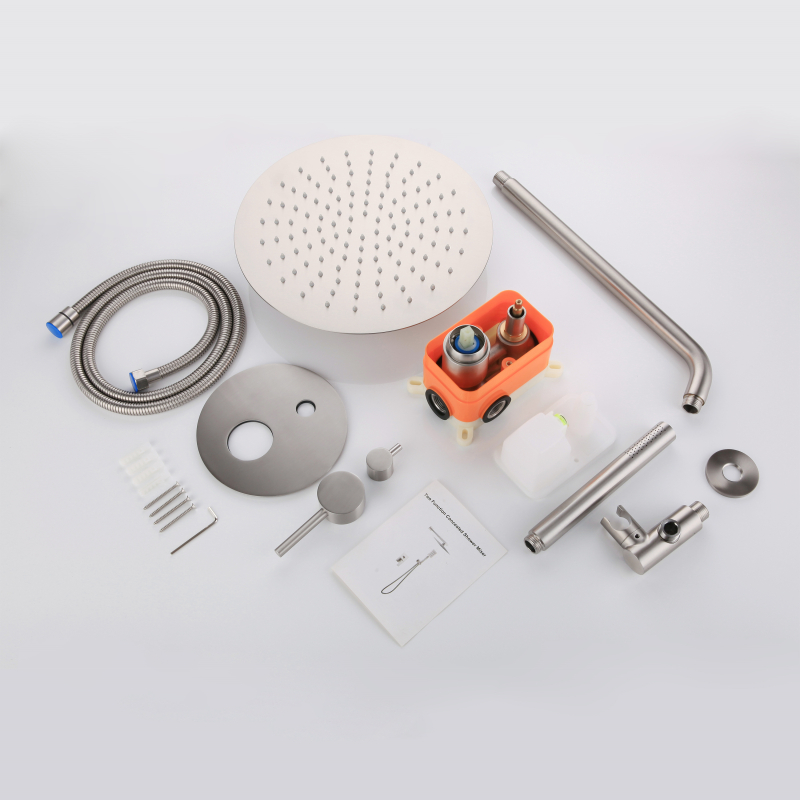 مجموعة الدش المخفية - مجموعة الدش المصنوعة من الفولاذ المقاوم للصدأ 304 تضفي شعورًا مريحًا بالاستحمام على حمامك، وأسلوب تصميم بسيط وعصري، ويضيف لمسة أنيقة إلى حمامك. إنه مصنوع بالكامل من الفولاذ المقاوم للصدأ 304 للحصول على أقصى قدر من المتانة. ويقدم مجموعة متنوعة من معالجات الألوان لاختيارك، مثل الكروم، والأسود غير اللامع، ورسم أسلاك الفولاذ المقاوم للصدأ، والرمادي المسدس، وذهب سحب الأسلاك، والنحاس الحمضي الذهبي، والذهبي الوردي، وما إلى ذلك، يمكنك اختيار اللون المفضل لديك ليتناسب مع نمط ديكور الحمام المفضل لديك.
