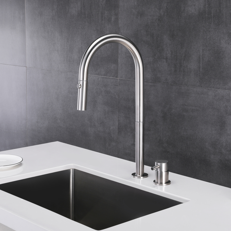 صنبور خلاط مطبخ قابل للسحب - صنبور حوض من الفولاذ المقاوم للصدأ 304 يستخدم إحساسًا بسيطًا ونظيفًا لمطبخك ، مصمم خصيصًا لحوض حوض الأوعية، مع ارتفاع مناسب يجعلك تشعر بالراحة عند الاستخدام. إنه مصنوع بالكامل من الفولاذ المقاوم للصدأ 304 للحصول على أقصى قدر من المتانة. ويقدم مجموعة متنوعة من معالجات الألوان حسب اختيارك، مثل الكروم والأسود غير اللامع والفولاذ المقاوم للصدأ المصقول والرمادي المسدس والذهبي المصقول والنحاس الحامض والذهبي الوردي وما إلى ذلك، يمكنك اختيار اللون المفضل لديك ليتناسب مع نمط ديكور المطبخ المفضل لديك.