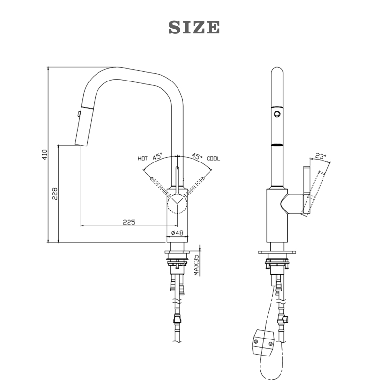 صنبور خلاط مطبخ قابل للسحب - صنبور حوض من الفولاذ المقاوم للصدأ 304 يستخدم إحساسًا بسيطًا ونظيفًا لمطبخك ، مصمم خصيصًا لحوض حوض الأوعية، مع ارتفاع مناسب يجعلك تشعر بالراحة عند الاستخدام. إنه مصنوع بالكامل من الفولاذ المقاوم للصدأ 304 للحصول على أقصى قدر من المتانة. ويقدم مجموعة متنوعة من معالجات الألوان حسب اختيارك، مثل الكروم والأسود غير اللامع والفولاذ المقاوم للصدأ المصقول والرمادي المسدس والذهبي المصقول والنحاس الحامض والذهبي الوردي وما إلى ذلك، يمكنك اختيار اللون المفضل لديك ليتناسب مع نمط ديكور المطبخ المفضل لديك.