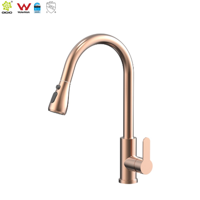 CUPC جودة عالية الحديثة 304 الفولاذ المقاوم للصدأ النحاس ارتفع الذهب ثقب واحد سحب خلاط مطبخ صنبور